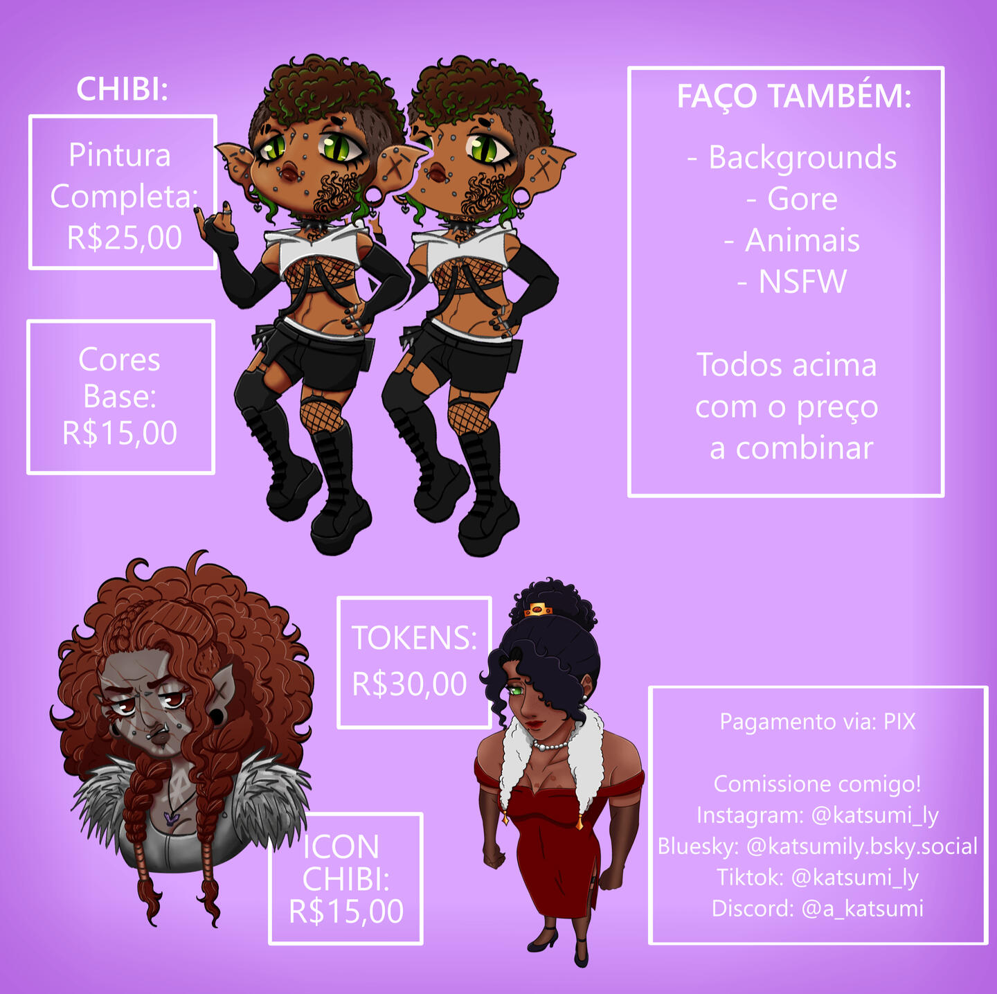 Pagamentos feitos 50% depois da scketch e 50% após a arte finalizada
